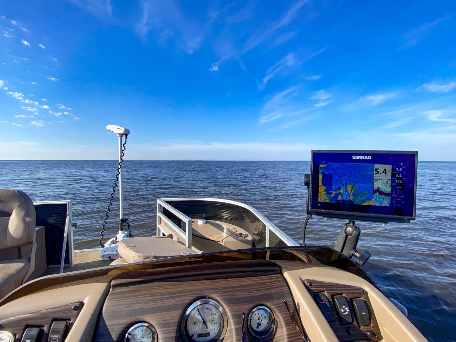Yesterday morning, at daylight, the kids and I launched the Bird Barge at the Barge Landing Boat ramp, Vancleave, Mississippi, near the headwaters of Bluff Creek. It was a gorgeous morning; the river, though flowing pretty well, was like glass. We had no particular destination but a full tank of fuel and two fully charged trolling batteries. When it is Patty, the kids, and I, we travel slowly, Patty listening and both of us on the lookout for birds. In this case, the kids and I averaged 14 MPH. The Bird Barge is very efficient with fuel, is very quiet, and doesn’t disturb the water much. Just enjoying the beautiful morning.