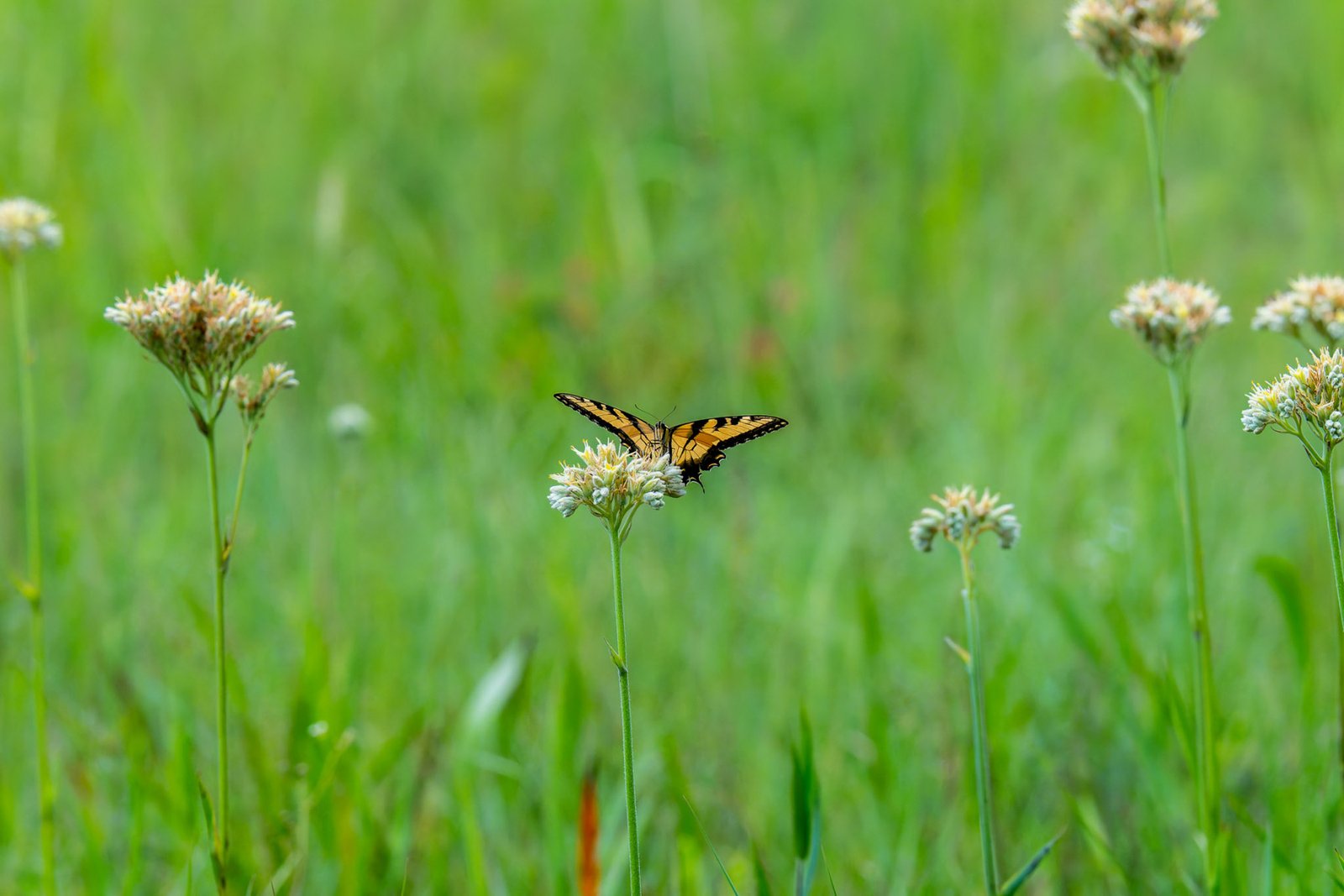 A few days ago, our neighbors, Anita and Mike, called to ask if I’d noticed all the Swallowtail Butterflies in the field between our properties; I had not. What a delightful surprise, dozens of Swallowtails and numerous other pollinators were collecting nectar from the blooming Spiritweed (Lachnanthes caroliniana; also known as Carolina redroot, Redroot, Bloodroot, or Pantherroot). I thought others might enjoy seeing these beauties!