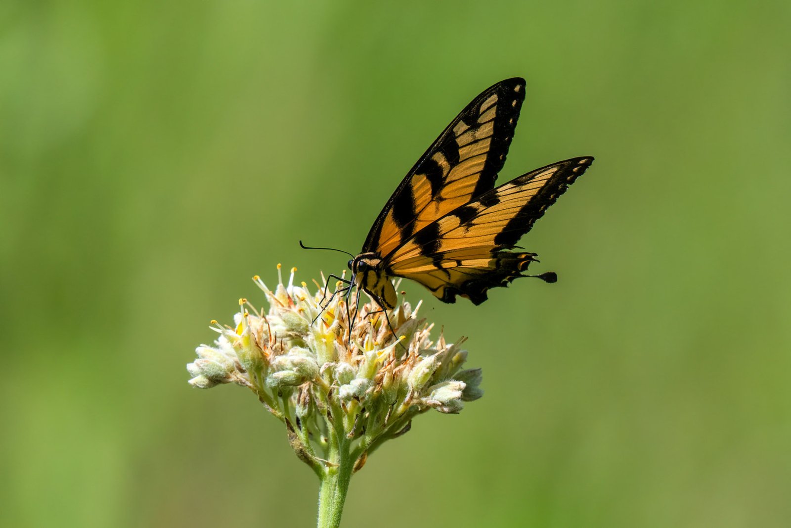 A few days ago, our neighbors, Anita and Mike, called to ask if I’d noticed all the Swallowtail Butterflies in the field between our properties; I had not. What a delightful surprise, dozens of Swallowtails and numerous other pollinators were collecting nectar from the blooming Spiritweed (Lachnanthes caroliniana; also known as Carolina redroot, Redroot, Bloodroot, or Pantherroot). I thought others might enjoy seeing these beauties!