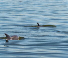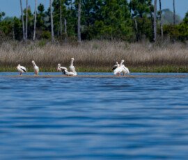 Saturday, we took the Bird Barge out of Ocean Springs Harbor, toured around the western tip of Deer Island to the Oyster Farms, on the way back we received an escort that you need to see.