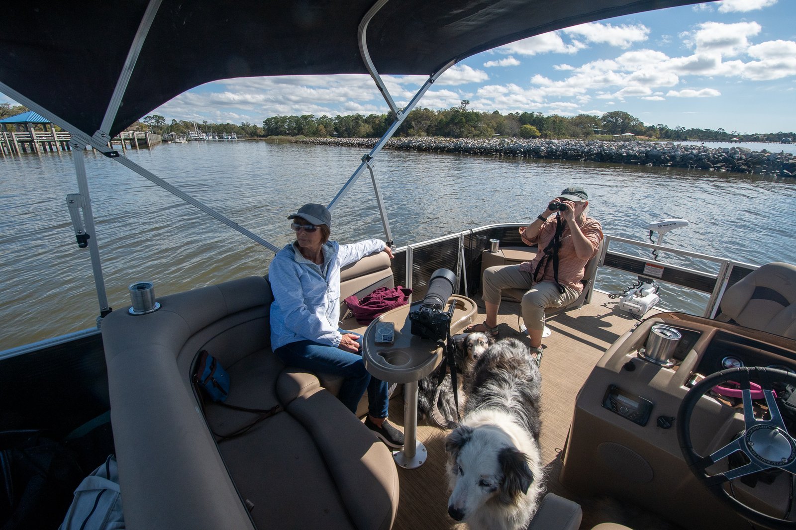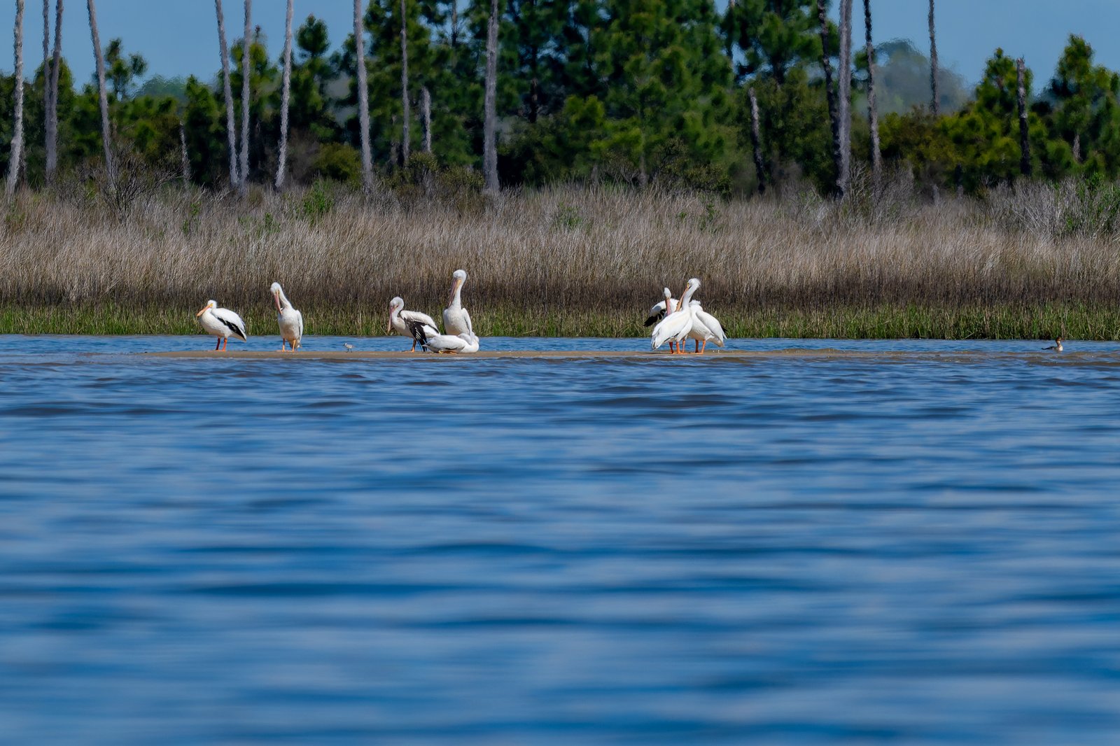 Saturday, we took the Bird Barge out of Ocean Springs Harbor, toured around the western tip of Deer Island to the Oyster Farms, on the way back we received an escort that you need to see.