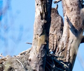 It turned out to be a beautiful day. We stopped at Gulf Island National Seashore Park and took a panorama to give you an idea of what the Davis Bayou Coastal Preserve looks like. We saw the Adult Great Horned Owl sitting on the edge of their nest. Occasionally, a tiny head would pop up, too small to see in the photo yet, but in another week or so, we will start to see the fledglings.