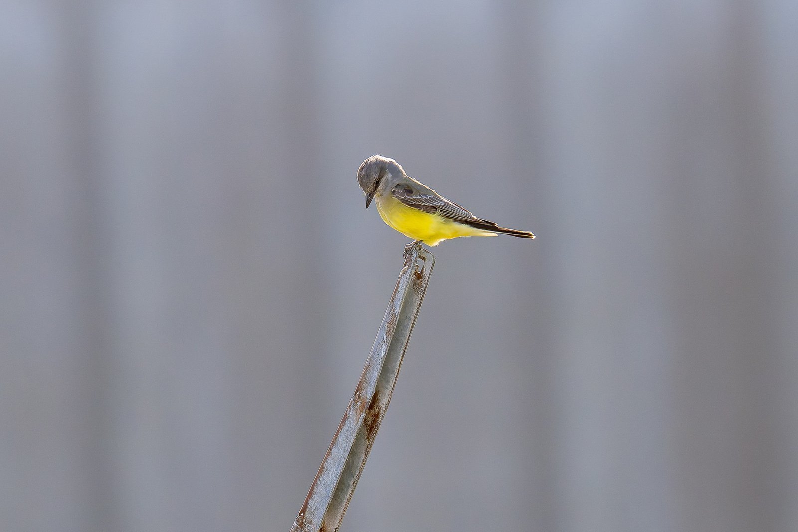 You have all heard me repeatedly marvel at our access to the great outdoors, the waterway, the national and state forest, then turn around and post photos of and tell of our discoveries right in town. Patty got word of sightings of the Western Kingbird around Clay Point Park in Biloxi, so Thursday morning we headed over to our frequent haunt, Back Bay Blvd and sure enough, near the old Presto factory and the Pelican Point Marina, we found the Western Kingbird. So much of this area is vacant lots following the devastation of Katrina of August/September 2005.